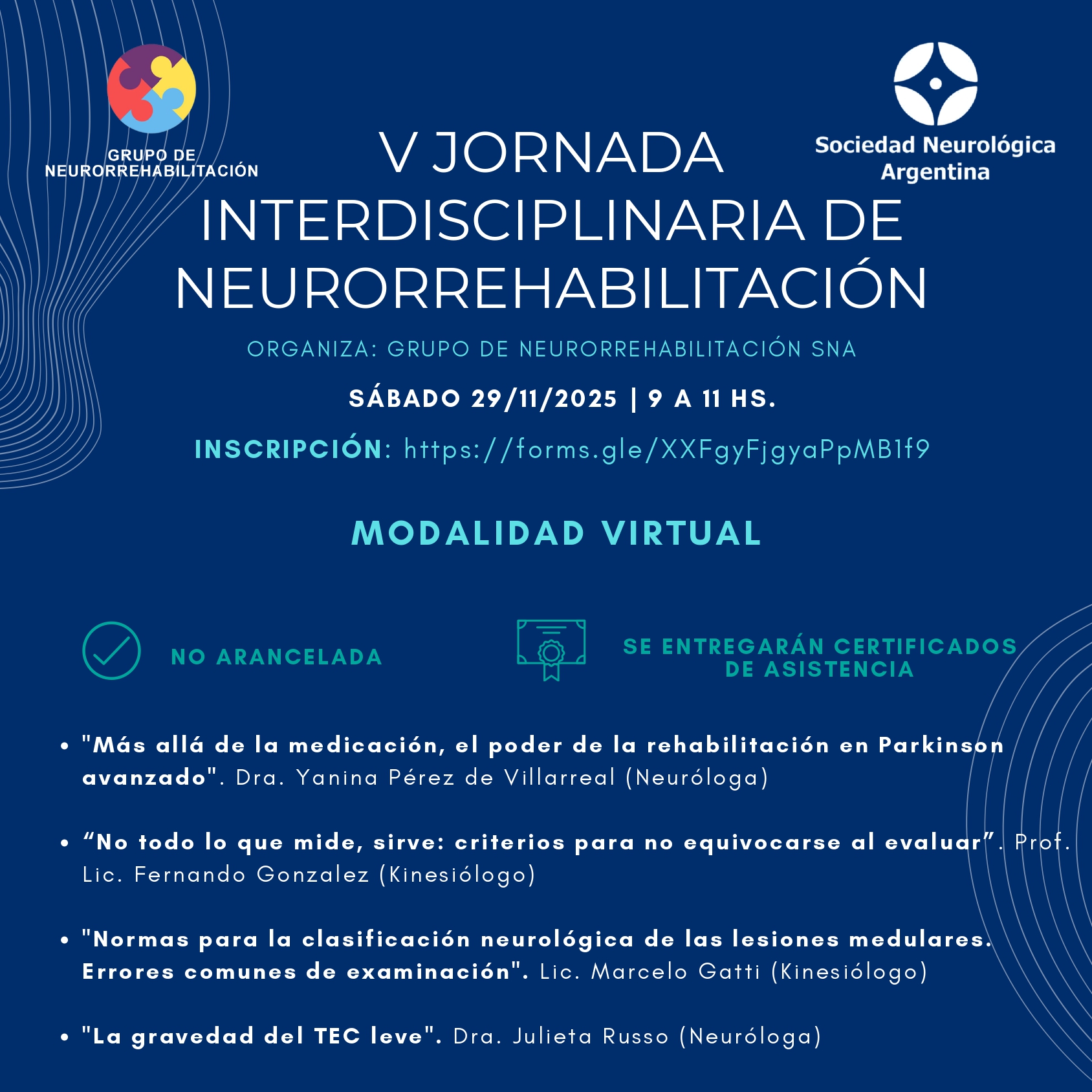 V Jornada Interdisciplinaria de Neurorrehabilitación Organiza: Grupo de Neurorrehabilitación de la SNA